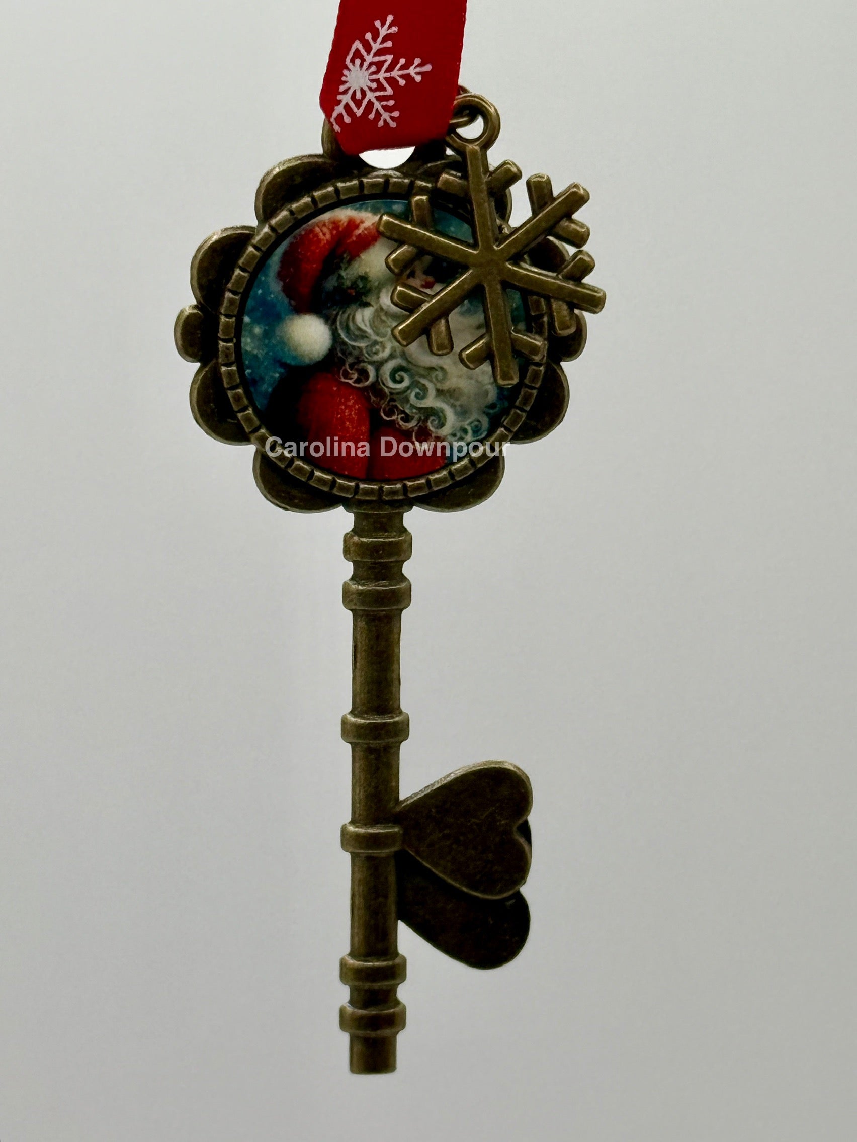 Metal Key featuring Santa on a Red Holiday Ribbon